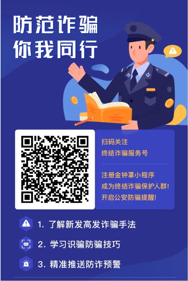 “金鐘罩”防詐公眾號,懇請您掃碼關注哦!