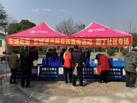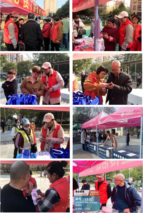 為了持續增強轄區居民防詐“免疫力”,浙江獵人特衛安保集團始終遵循“紅雁內保”黨建品牌指引,專門成立“黨員志愿服務隊”,聯合永康市東城街道辦事處、派出所、相關社區居委會、中國移動永康分公司,在園丁小區、北苑小區、三馬嘉苑廣場、宜家花園小區等社區開展反詐宣傳活動。