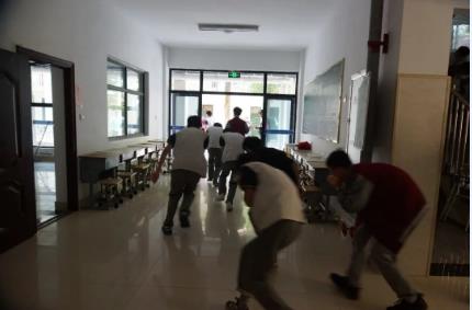當歹徒持刀出現在校園附近,學校所有保安員分工明確,制伏歹徒和疏散學生同時進行,取得了預期的演練效果。