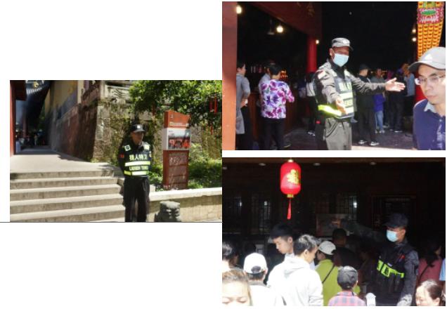 小長(zhǎng)假期間,獵人特衛(wèi)的保安員們每天6:00就在崗位上就位,盡管天氣炎熱,也能看到他們認(rèn)真執(zhí)勤的身影,五一期間的方巖景區(qū)安保維穩(wěn)工作在他們的共同努力下圓滿完成。