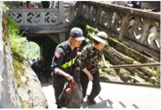在最陡峭的天王殿,特衛(wèi)隊(duì)吳政看見(jiàn)一位阿姨提著一整袋上香的物品負(fù)重前行,主動(dòng)上前攙扶并幫她提東西。為方巖景區(qū)增添了一道暖心的風(fēng)景線。