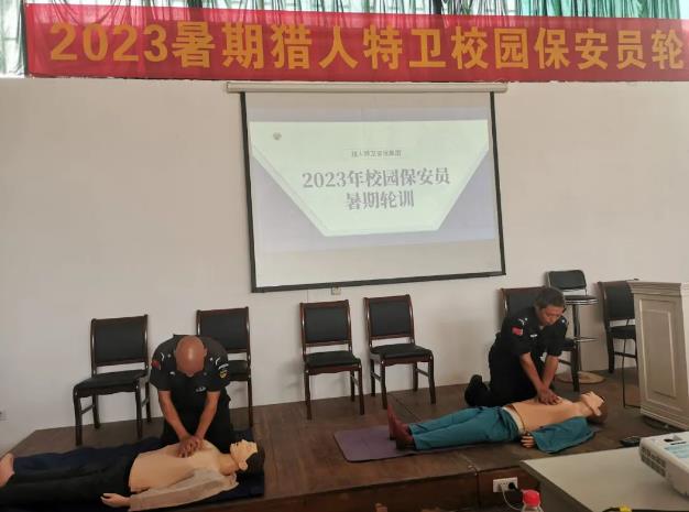 培訓課程主要有七個方面。一是業務規范培訓:從職責任務、勤務工作、監督管理及保安服務管理條例等方面對校園保安員進行知識培訓,包括出入口守護、安全隱患識別排查、校園欺凌及暴力提前識別和防范、自然災害防范、消防安全管理及火災應急救援等;二是反詐知識宣講:針對近段時間頻發的兼職刷單類、假冒身份類、網絡貨款類、網絡賭博類、投資理財類、婚戀交友類等案例展開分析和互動;三是防暴防災技能:包括突發事件時的應急反應、突發狀態時保安員應急出擊技巧、不同情況下的保安裝備運用和消防器材使用、不同環境下的保護側重點選擇、處置突發事件的應急聯動等;四是緊急救治訓練:包括止血、傷口包扎、心臟復蘇等;五是隊列軍體訓練,通過儀容儀表、隊列動作、工作紀律現場組訓,以加強組織紀律性,樹立大局意識,提高凝聚力戰斗力;六是溺水防范指導:包括溺水風險隱患排查、安全巡邏巡查防范、風險預警等;七是職業道德禮儀的規范培訓。