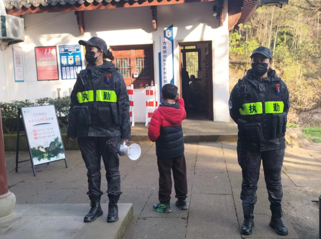 春節假期,旅游無疑是熱門選項,大批游客紛紛來到永康市方巖景區“打卡”游玩。為做好景區安保工作,浙江獵人特衛安保集團有限公司會同永康市公安局巡特警大隊、方巖派出所及景區管委會提前制定工作方案,細化隱患排查、巡邏防控、交通疏導、游客分流、秩序維持、服務救助等措施。從除夕夜開始,在景區游客集散中心、巖下老街、胡公寺、五峰書院、纜車索道站點、上天門過道等人員密集位置和重點安防位置設置固定值守點、巡邏防控線路和警力待命點,全面落實“覆蓋巡護”機制,做到“定人、定崗、定責”,時刻守護游客的平安。