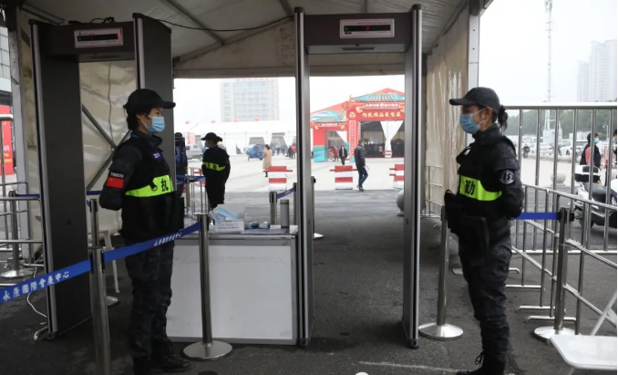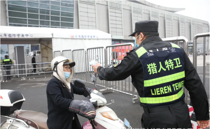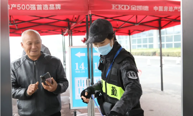 安保人員在展會外圍各路口、各展廳、各展位進行測溫、查驗健康碼、指揮車輛、定時巡查。做到提前上崗,著裝整齊,精神飽滿,嚴格按照安保工作流程,態度嚴謹,動作規范,確保農展會人員、物品進出安全有序。